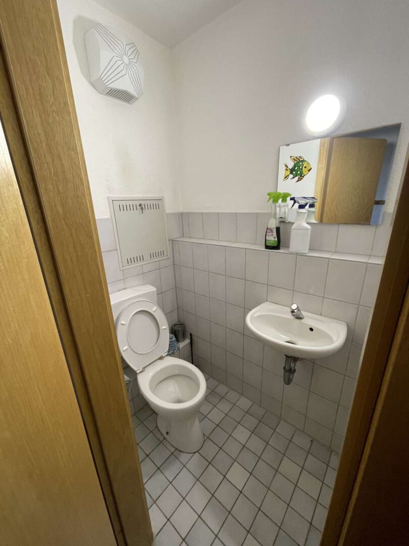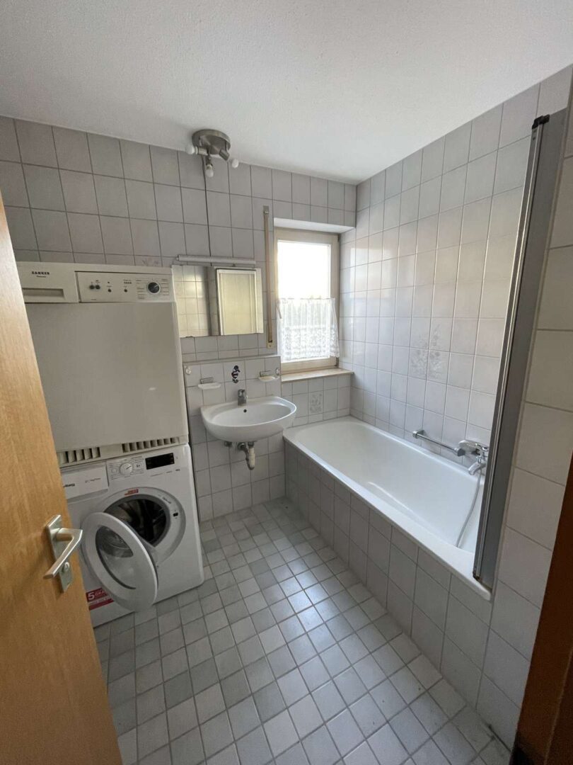 Das Bad verfügt über eine Badewanne, Waschbecken und Waschmaschinenanschlüsse, das WC ist separat vom Bad was sehr praktisch ist.