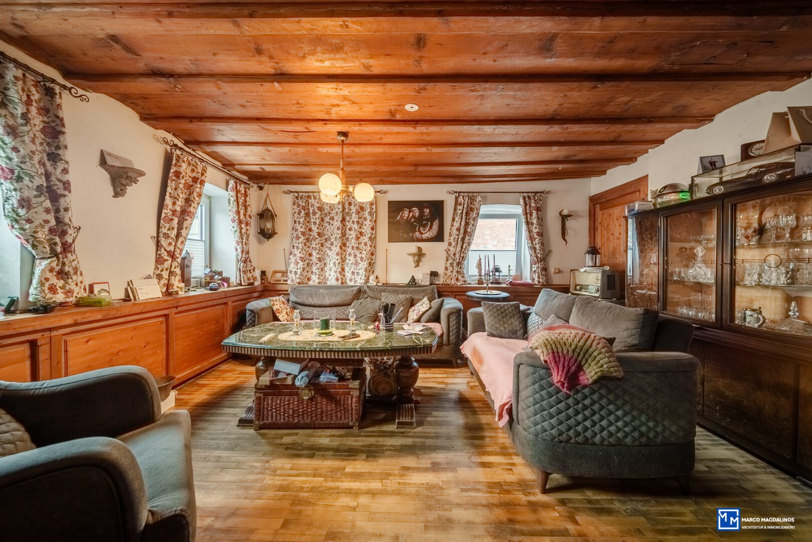 Das Haus, dessen Baujahr unbekannt ist, wurde erstmals 1949 renoviert und in den Jahren 2002 und 2015 teilweise modernisiert. Sie betreten das Erdgeschoss, wo sich ein gemütlicher Holzofen befindet, der für wohlige Wärme an kalten Tagen sorgt. Der überwiegende Teil des Fußbodens ist mit Holzdielen ausgestattet, die dem Raum eine besondere Atmosphäre verleihen. Im Jahr 2015 wurde die Gaszentralheizung erneuert, ebenso wurden neue 2-Fachverglaste Kunststoffenster und eine neue Küche eingebaut.