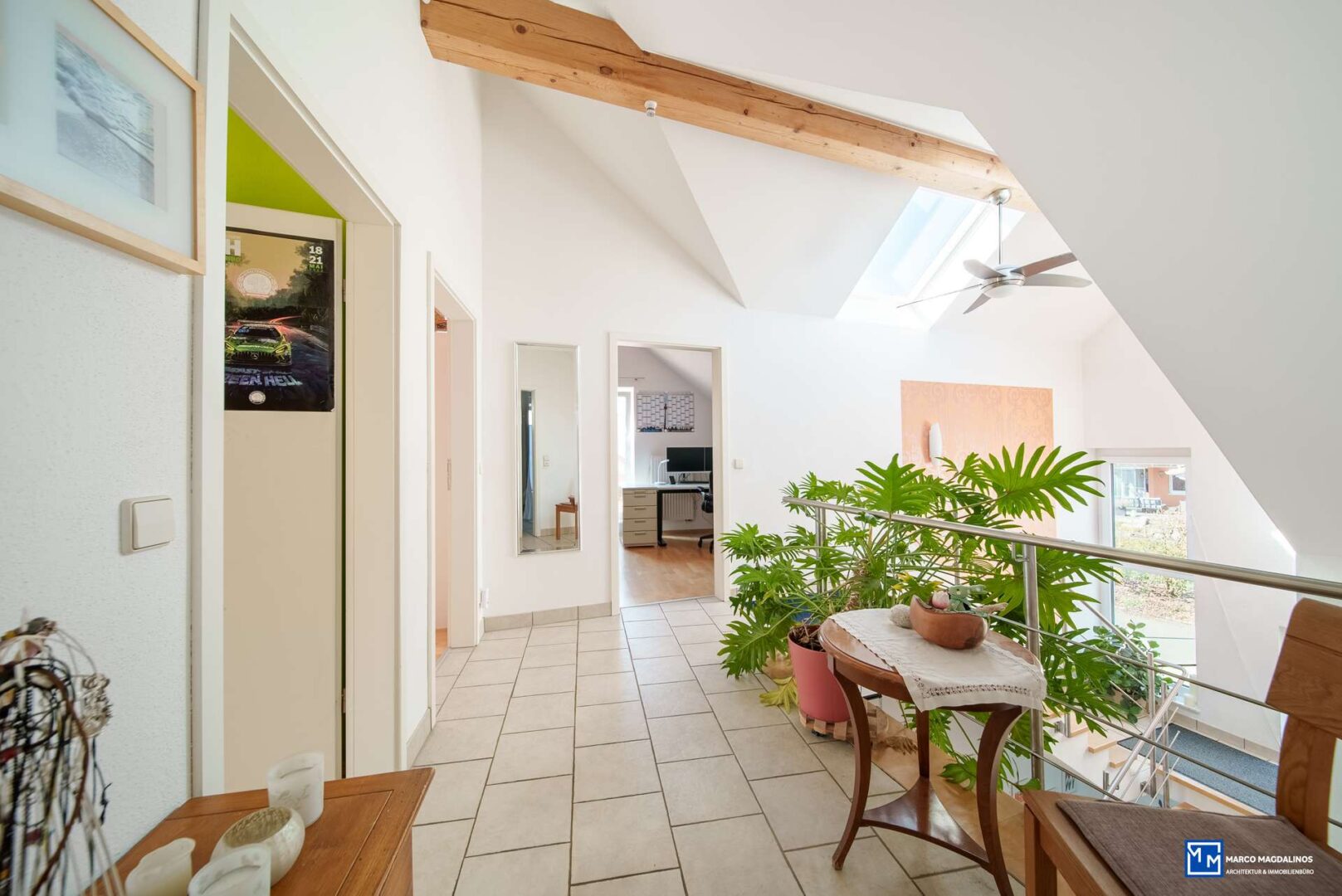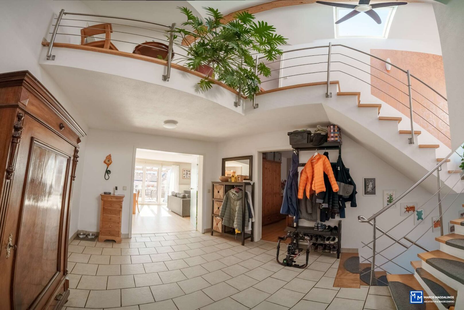 Beim Betreten des Hauses, empfängt Sie als Auftakt eine helle Galerie, mit Blick bis auf die Terrasse, schon hier spüren Sie den besonderen Charakter dieser Immobilie.