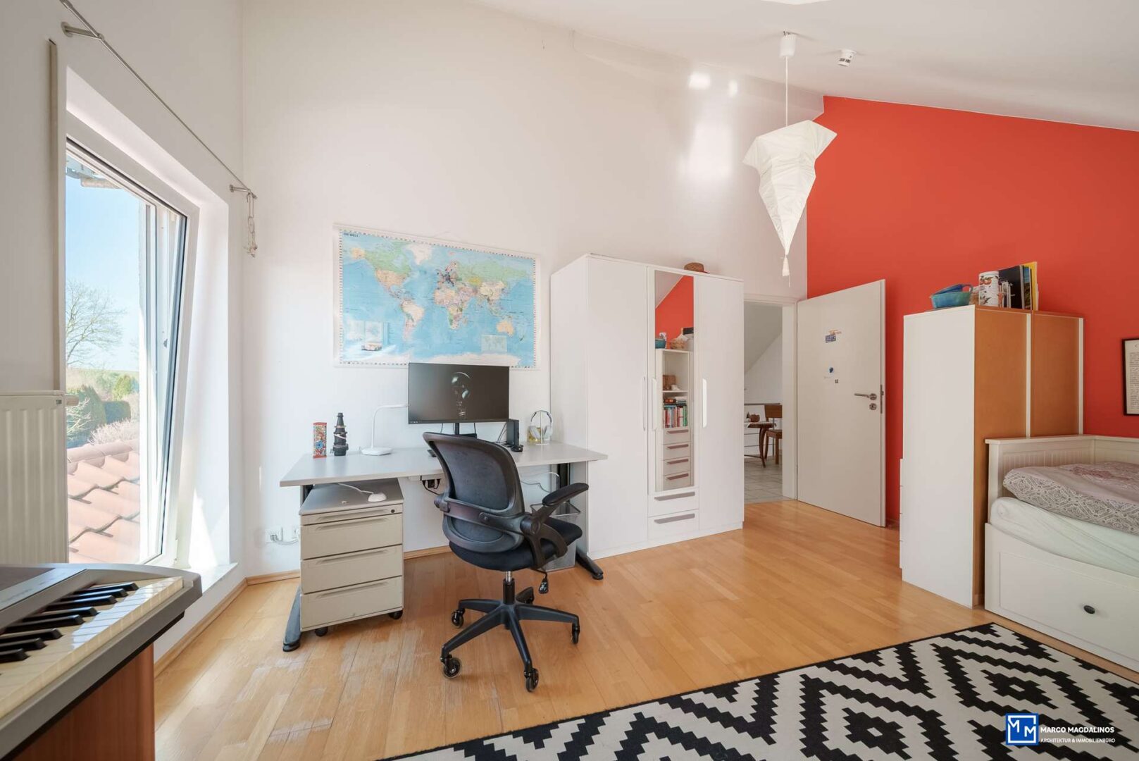 Das Haus erstreckt sich über zwei Etagen und bietet insgesamt 6 helle und freundliche Zimmer, die individuell gestaltet werden können.